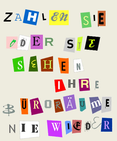 so zogen also r.k., der kleine schlozz bienenschlau und der pompatz von dannen und ließen die köpfe hängen, denn sie hatten ihre seele verkauft. an eine verbrecherbande, die nichts anderes im schilde führt als sie lebenslang zu knechten und zu knebeln und ihre gebeine auf schmaler flamme auf dem scheiterhaufen der hölle zu rösten. nun würde ihr blut getrunken von dunklen grausamen schmanen und da wo andere ein herz haben, gähnt bei den dreien von nun an ein korrupter staatsbeamter, welcher mit dem fallbeil der gnadenlosigkeit…
