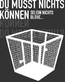 früher war das hier eine beschreibung des nichts, vielleicht wird es in zukunft eine beschreibung des scheiterns. wäre ja interessant, macht ja sonst keiner. sind ja alle voll beschäftigt, haben nie zeit, stehen auf gästelisten, generieren umsätze, sinn extrem busi, abgezockt, tres chic und so. hamm dieses lästige schlechte gewissen in die tonne gekickt. oder sie essen einen apfel und lesen ungarische romane, welche sie von elke heidenreich ins gemüt diktiert bekamen. in dieser welt, will ich gerne scheitern.
