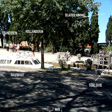 an den schleusen wars dann total aufregend. wir setzten uns auf eine bank und waren erstaunt wie so ein schleusengang uns einen schauer nach dem anderen den rücken entlang richtung gesäß jagte und so blieben wir viele schleusengänge sitzen und waren wie gelähmt vor spannung. es fuhren viele freizeitkapitäne ein und aus, welche ihr boot fachgemäß in der schleuse quer stellten. das schöne daran war, dass IMMER die männer fuhren und die frauen an land an einem faden zogen, an welchem das boot angebunden war, um die fehler der männer unter gejohle der zuschauer zu korrigieren. das mit dem gejohle habe ich mir ausgedacht. die zuschauer waren alle cool. „verdammt, verdammt, verdammt!!!“ sagte ich zur finnin „ich will mich auch mit so einem hausboot in den neun schleusen von beziérs blamieren und du ziehst am seil. büüütte, sag ja!“ „ja!“ sagte die finnin prompt und ich träumte vom nächsten jahr und wie wir uns in den neun schleusen von beziérs bis auf die knochen blamieren. vielleicht so um ostern, das wäre prima. da nahm die finnin meine hand und wir spazierten zu unserer karre. während sie ihre eidechsenlederrennhandschuhe überstreifte, träumte ich vom ostern des jahres 2007 und dann weckte mich wieder geruch von verbranntem gummi. mit tempo 230km/h gings in richtung marseillan (nicht zu verwechseln mit marseille) in unser aktiv bemustertes kleines heim mit den freundlichen vermietern.
