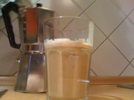 Wenn ich das nicht hätte. Kurz nachdem sich der Morgen in mir erbrach, zischelte und fauchte sich unsere liebe Expretzomaschine dieses Heißgetränk zu recht. Prost!