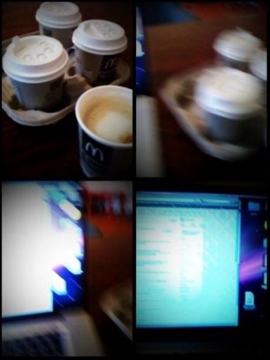 Kurz zum Bahnhof, die Finnin "weggebracht" und dann die Fluten durchpflügt, Kaffee gekauft (4x 0,2 kosten 4,00€, 2x 0,3 gibts für 3,98&. Jetzt rechnen Sie mal), im Parkverbot geparkt, jetzt im Büro. Aufregend, was?!