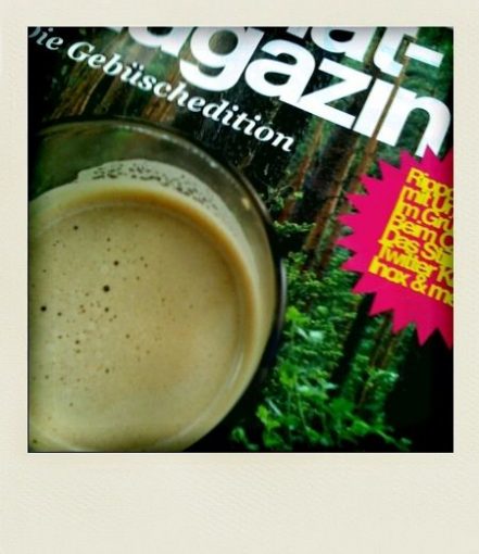 Och naja. Warum nicht. Leichte Kopfschmerzen befinden sich in meinem Kopf. Unter dem Kaffee sehen Sie die Sommerausgabe des Dingenskirch.Magazins. Äh… und sonst? Alles fit?