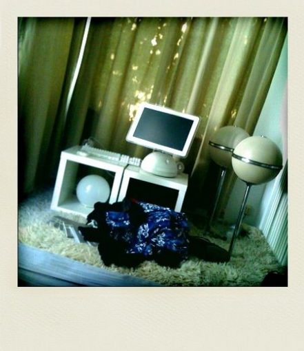 Da lass ich mich nicht lumpen und leiste meinen Beitrag zur Woche der Unbedeutsamkeit in diesem Blog. Meine Aussicht vom Arbeitsplatz auf die alte Lampe, die Grundig-Lautsprecher, sowie Hose und Hawaiihemd. Und heute abend fotografiere ich noch einen Arbeitskollegen beim Unfug machen.