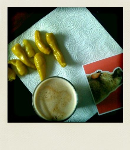 Peperoni zum Frühstück! Ich bin mir sicher das ist in Mexico und Ungarn gang und gäbe. Da kukkt niemand komisch drein, wenn man sich die köstlichen kleinen Fonzies vor 9:00 Uhr in den Rachen schiebt, aber hier heißt’s dann gleich wieder: "Der will doch nur auf sich aufmerksam machen, der glaubt doch, der sei was besonderes!"
